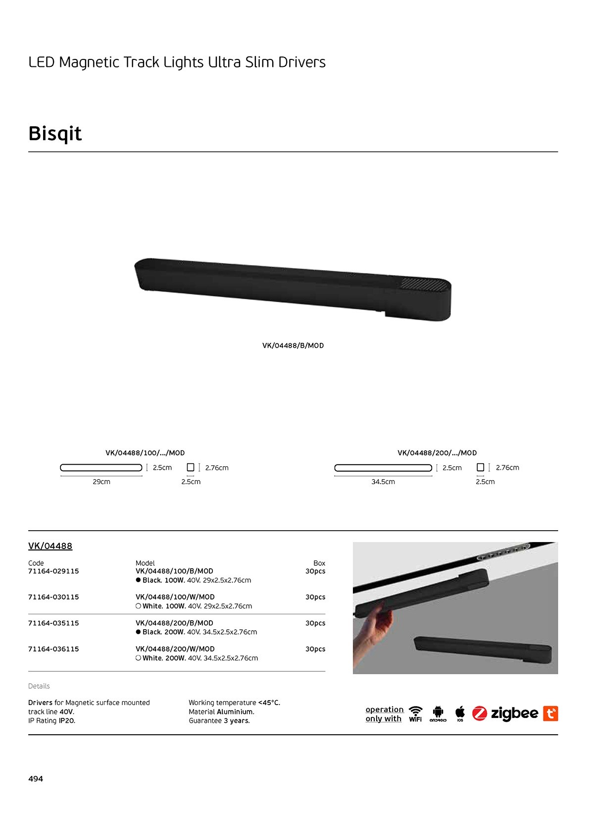 BISQIT, Τροφοδοτικό μαγνητικής ράγας 40V Ultra Slim, 100W, IP20, 29x2.5x2.76cm, λευκό